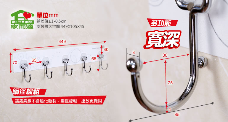 家而適居家多功能掛鉤架(大鉤5入)