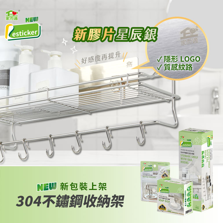 品名:家而適盥洗用具壁掛架尺寸:請看上方商品縮圖之一材質:304不鏽鋼、強黏無痕膠、PP、PC塑膠產地:台灣一入裝含:置物架X1、迷你雙勾強力貼膠片X1、無痕輔助膠片X1、承重保固卡X1膠片設計承重:SGS檢驗12KG 鑑驗編號:M423756安全承重:3KG以下