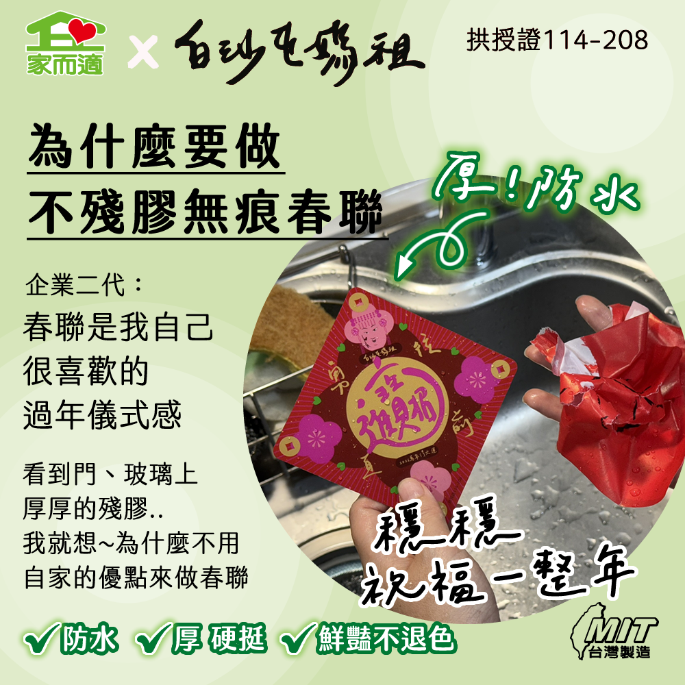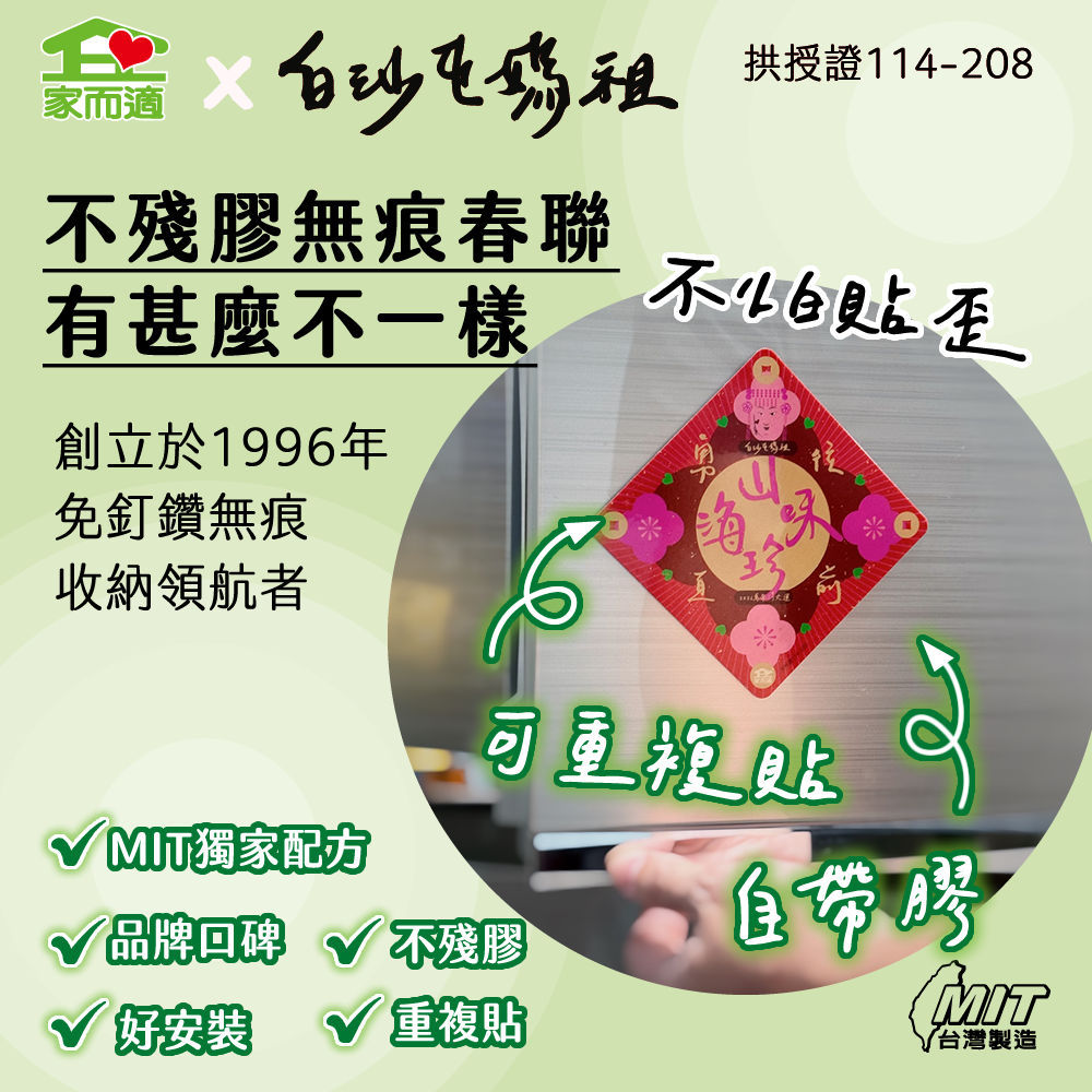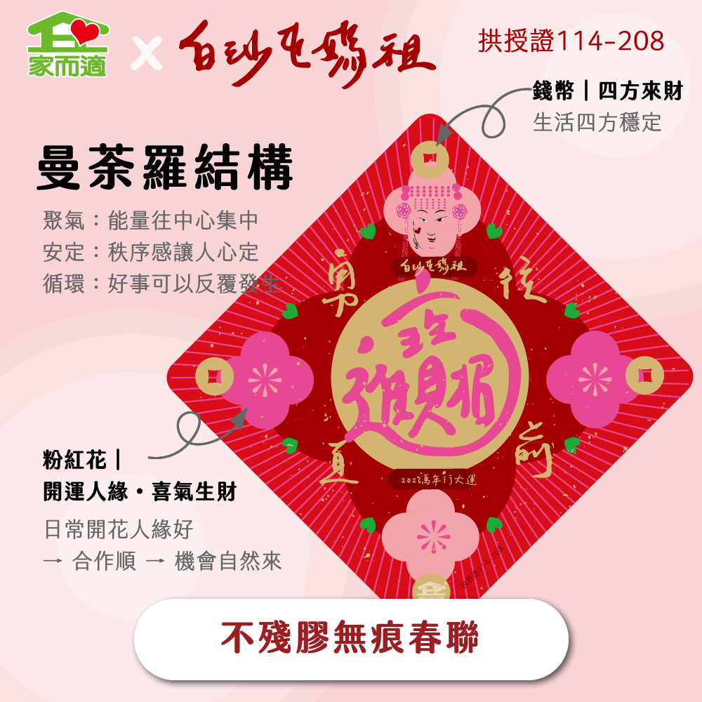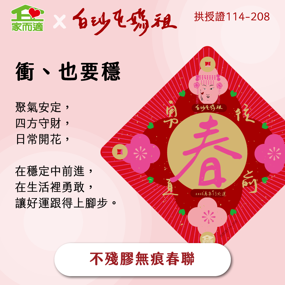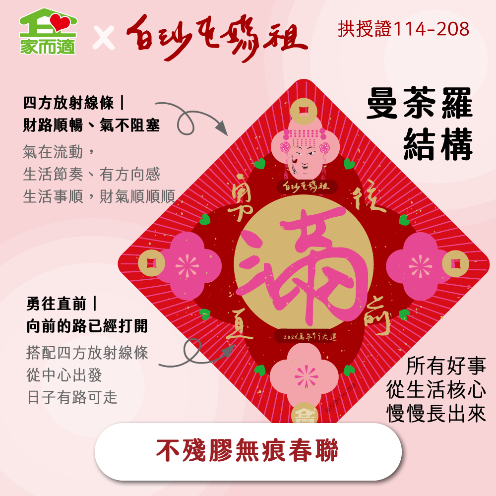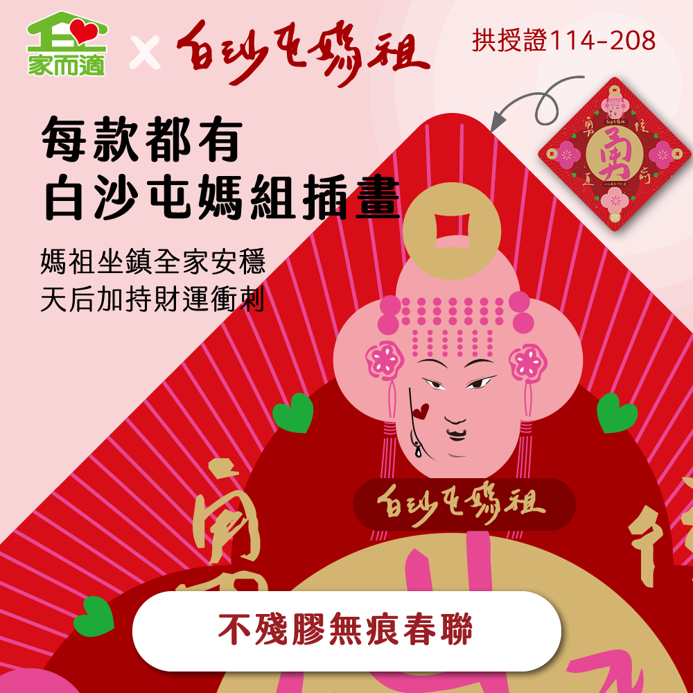 早鳥預購價【 家而適X白沙屯媽祖 2026年勇往直前系列】MIT不殘膠無痕春聯