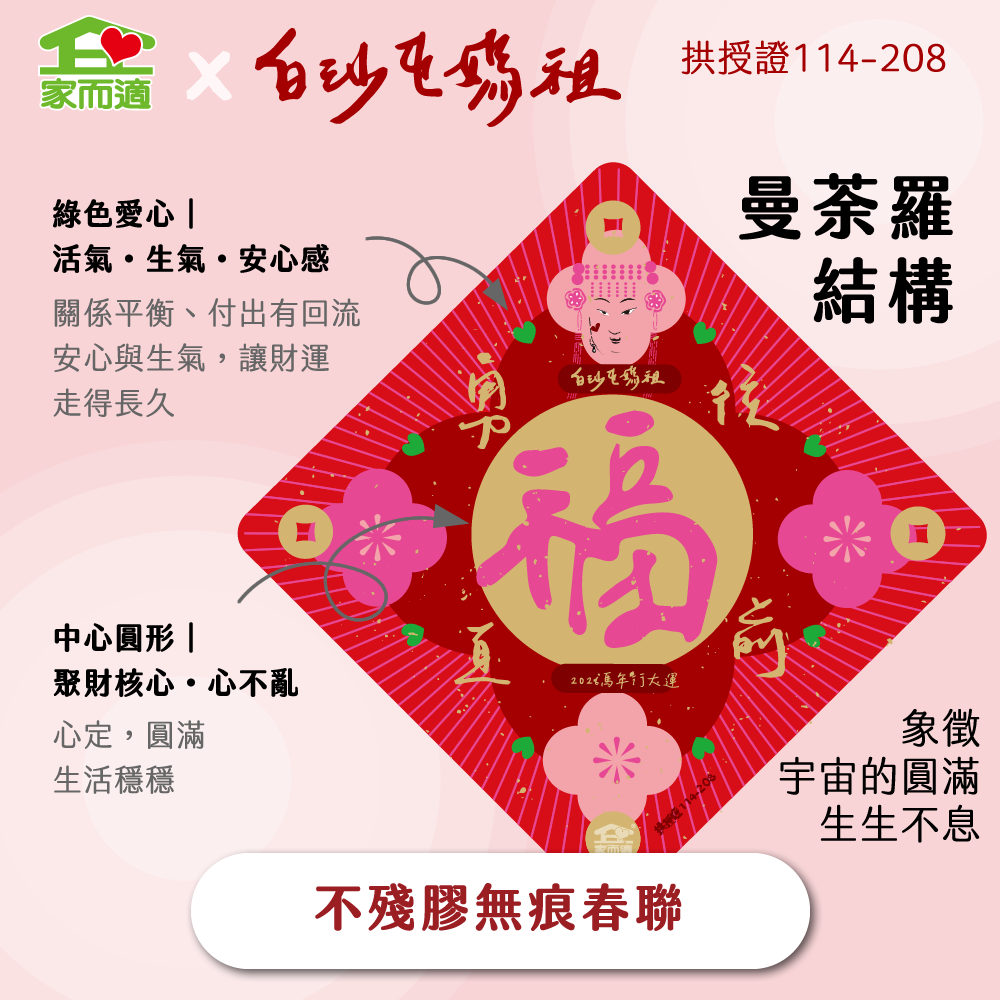 【 6款一組 】【 家而適X白沙屯媽祖 2026年勇往直前系列】MIT不殘膠無痕春聯10X10公分 春、福、滿、招財進寶、山珍海味、勇
