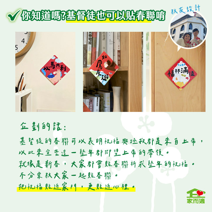 【 家而適X教友設計 2026馬年福音春聯系列】MIT不殘膠無痕春聯10X10公分
