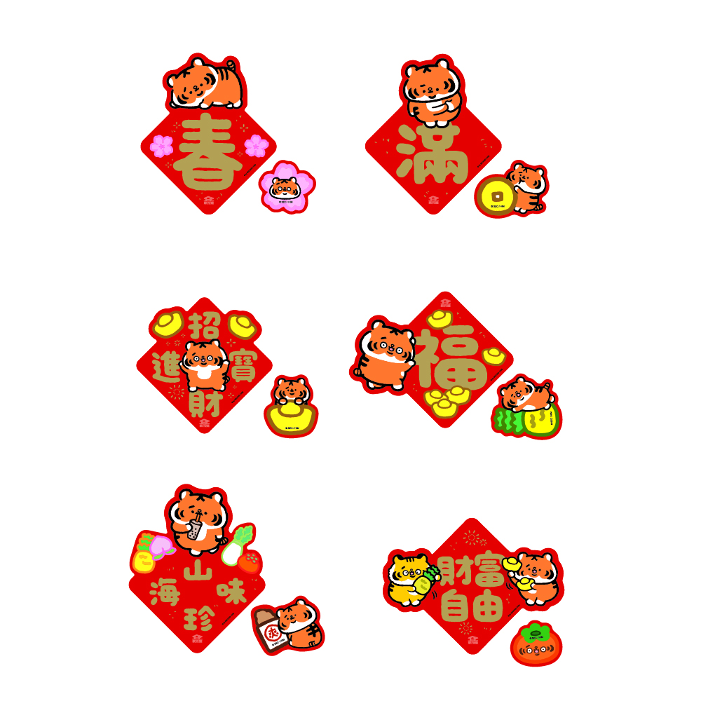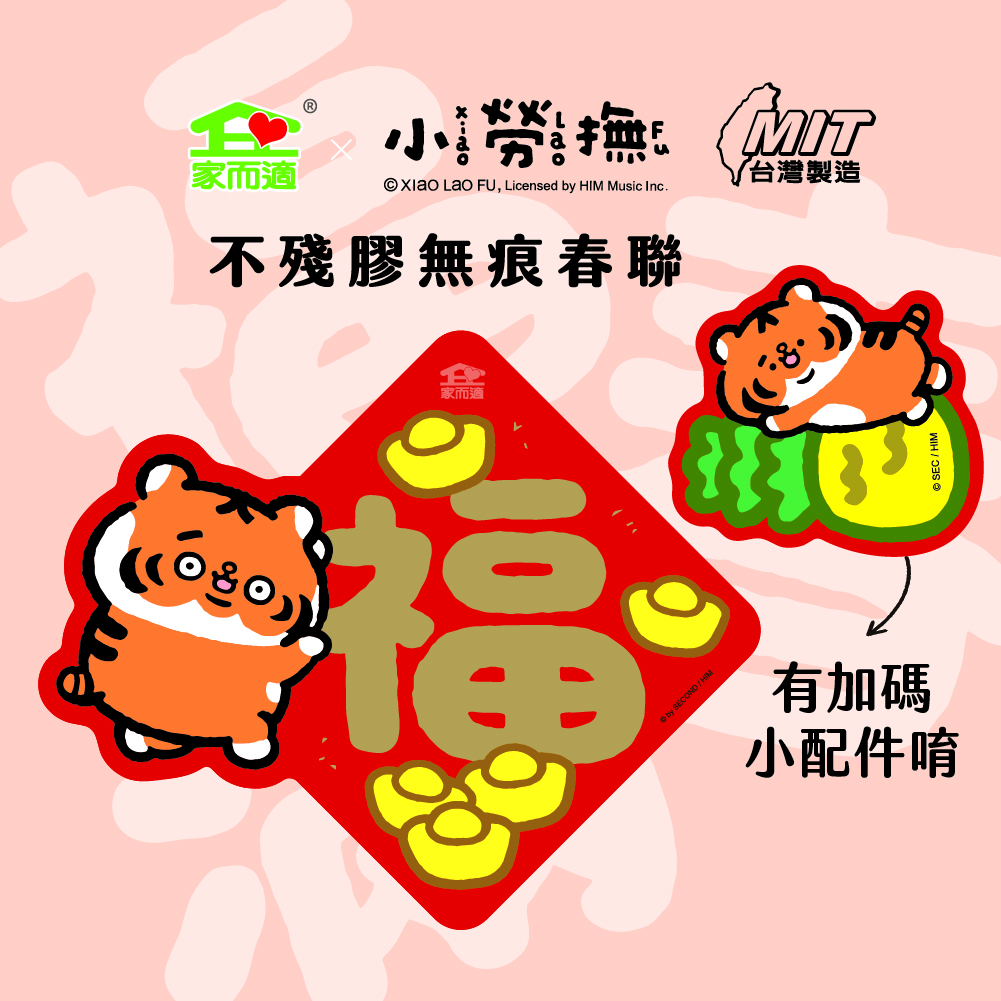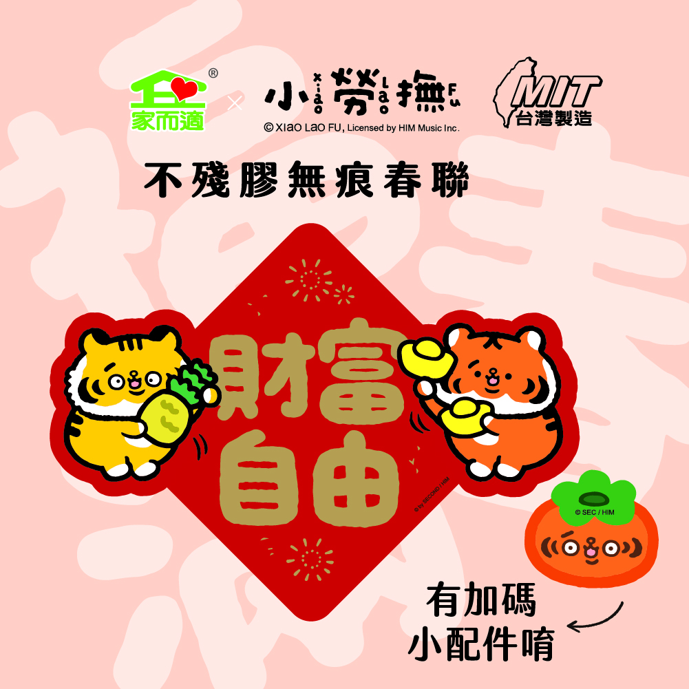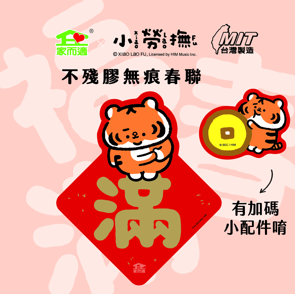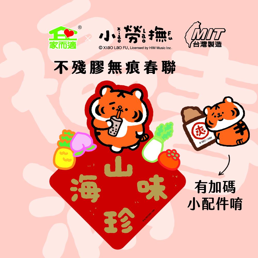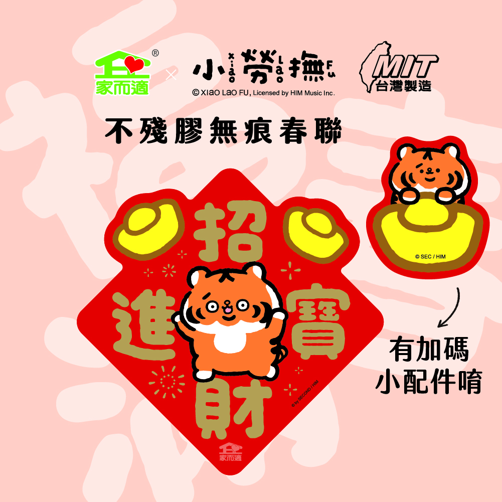 【6款一組】NEW!!家而適X小勞撫 不殘膠無痕春聯 春 福 滿 山珍海味 招財進寶 財富自由