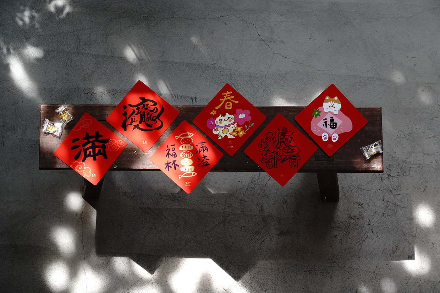 2025年是象徵長壽、幸運與財富的蛇年,因此除了一般常見的春聯款式:春、福、滿、招財進寶、山珍海味,我們的聯名藝術家也特別推出了獨家限定款,率先為「好好生活,一起祈福」的這個活動,獻上祝福!